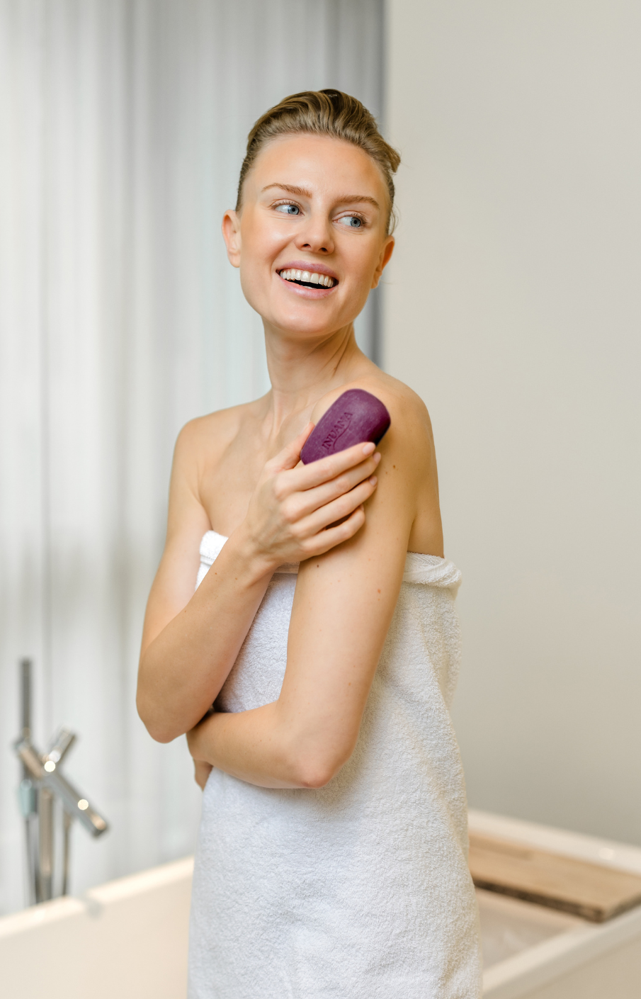 Nach dem Duschen die Haut sanft trocken tupfen und anschließend mit dem Inuana Pflegeölstick (coming soon) pflegen – für geschmeidige Haut und einen Duft, der lange anhält.