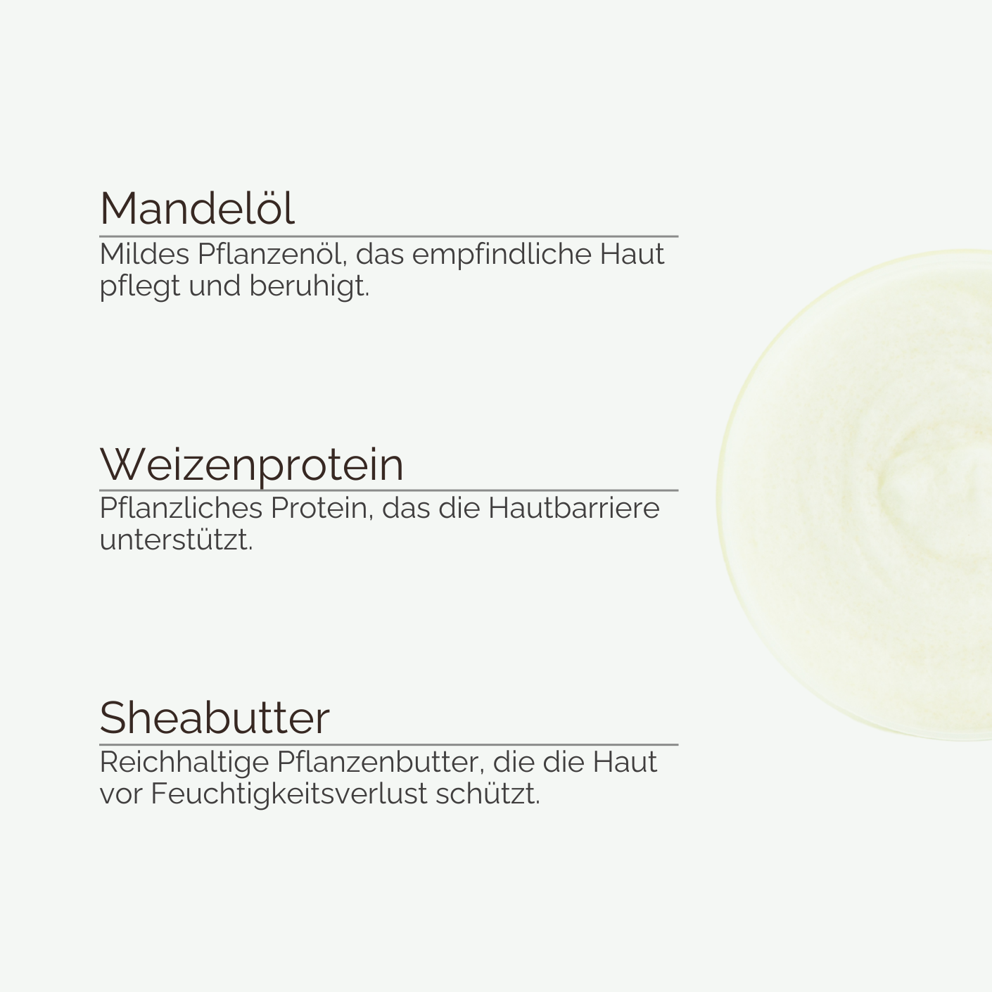 Die feinen Zuckerkristalle exfolieren die Haut, während Sheabutter und Kokosöl sie intensiv nähren. Beim Kontakt mit Wasser verwandelt sich die Formel in eine cremige Emulsion, die sich leicht abspülen lässt und ein geschmeidiges Hautgefühl hinterlässt – ganz ohne fettigen Film.